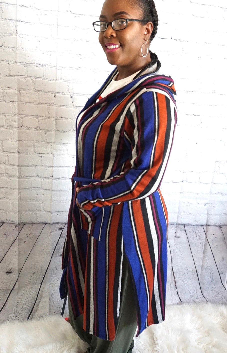 Our Royal Mix Hooded Open Front Cardigan is the perfect way to bring a little royal flair to your wardrobe. This cardigan is perfect for a day at the office or a night out on the town. With a large hood, three-quarter length sleeves, and an open front with belt this cardigan is both comfortable and versatile.